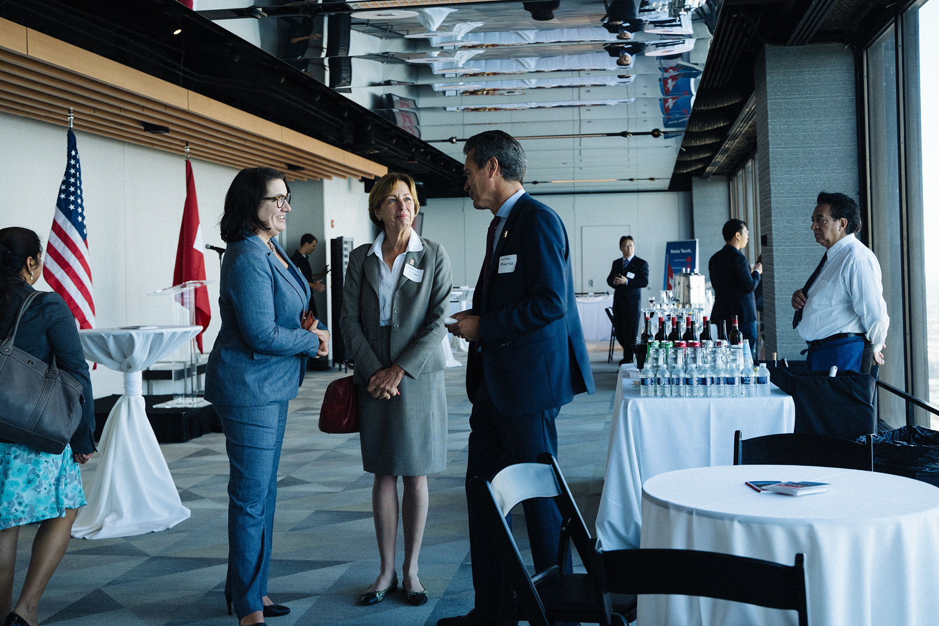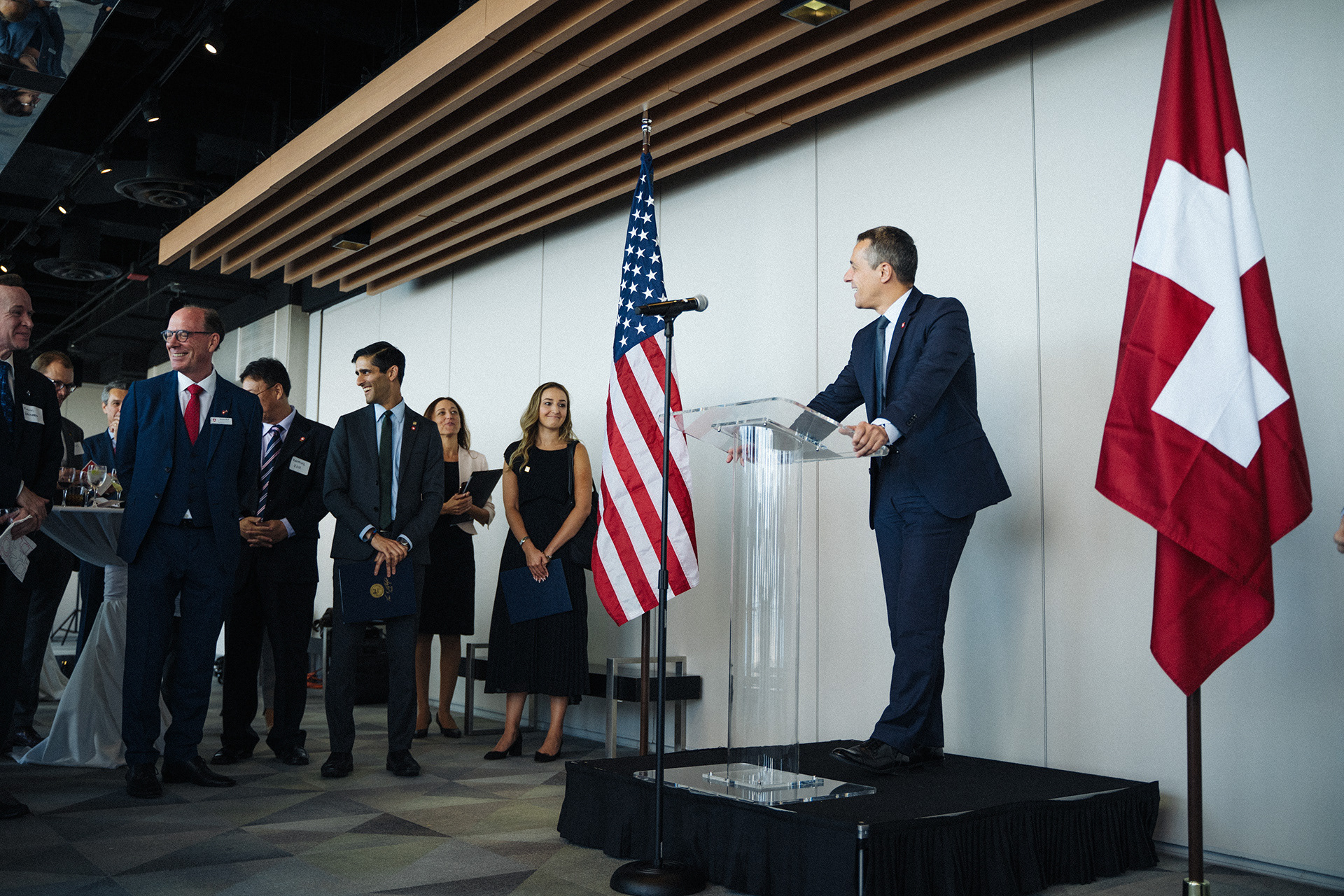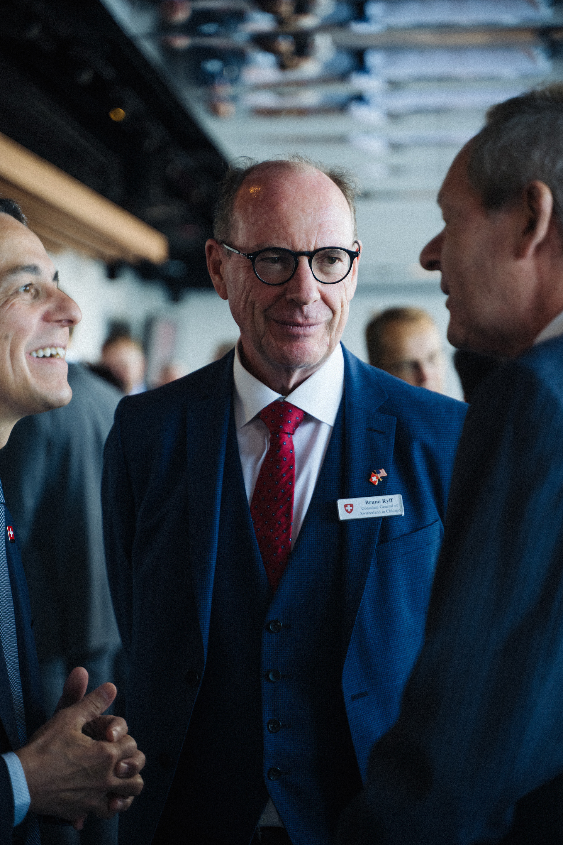 The Foreign Minister of Switzerland, the Consul General of Switzerland in Chicago, and other notables gather for the reopening of the Swiss Consulate of Chicago in Willis Tower in 2019.