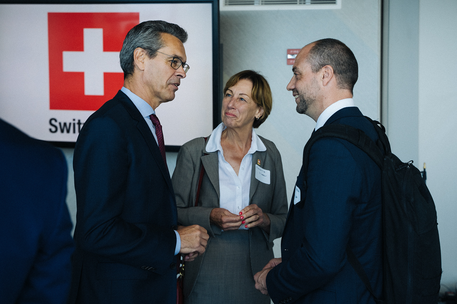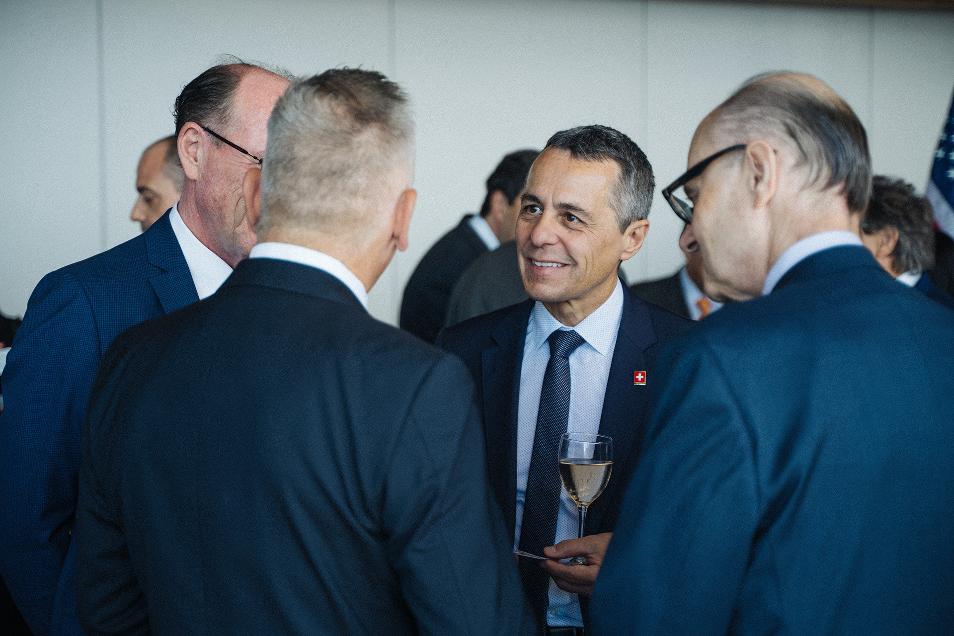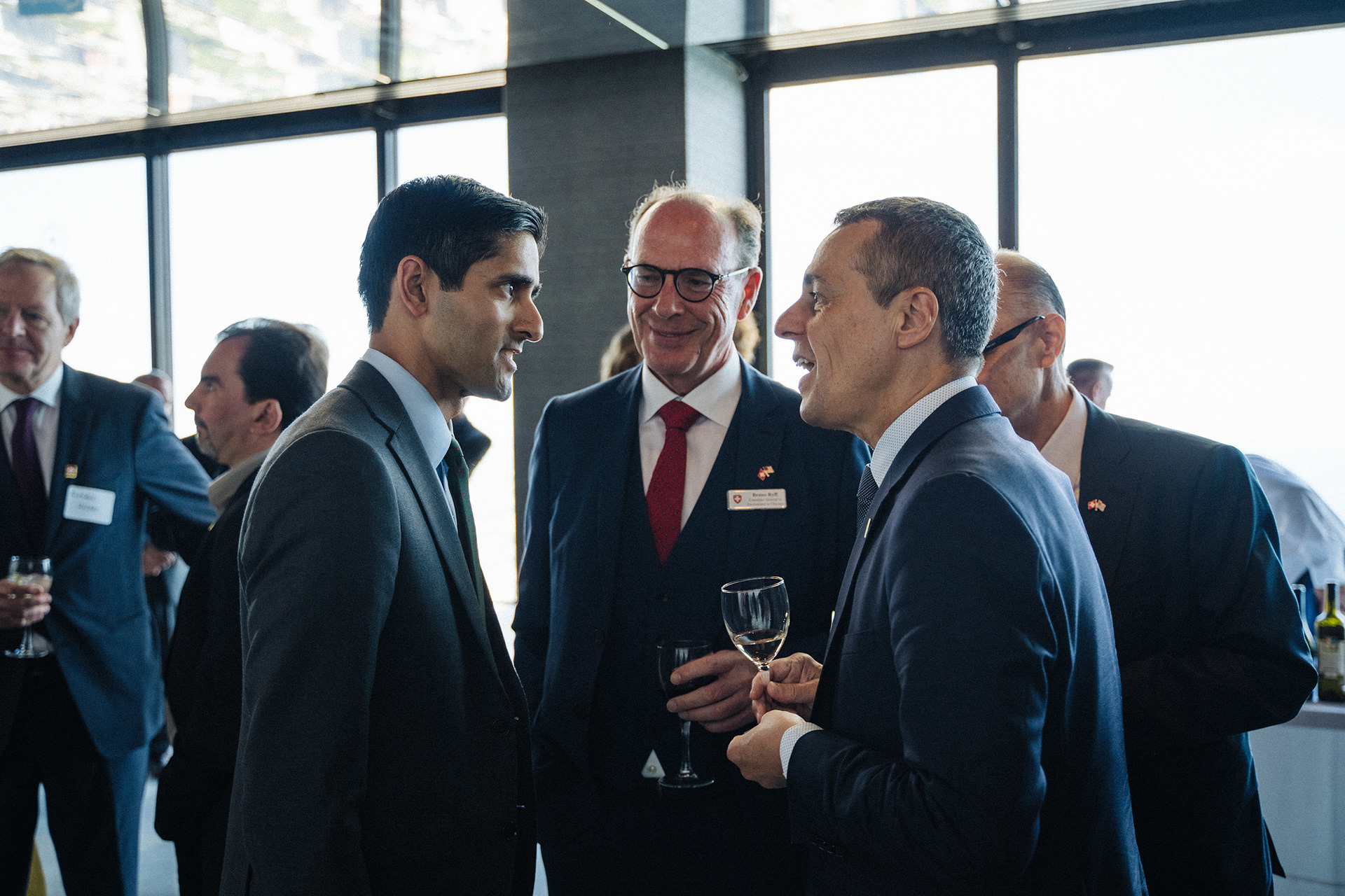 The Foreign Minister of Switzerland, the Consul General of Switzerland in Chicago, and other notables gather for the reopening of the Swiss Consulate of Chicago in Willis Tower in 2019.